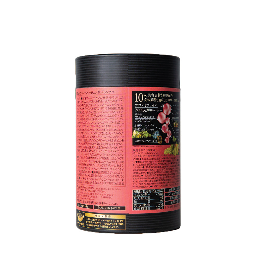 Fish collagen peptide (domestic production), Apple juice, Organic blue agave syrup, Grape juice, Lemon juice, Western pear juice, Apricot puree, Dextrin, Agar Konjac flour, Herb extract (emmeiso, sage, bodaiju, lacanca, otogirisou), Salmon nasal cartilage extract containing proteoglycan, Plant fermented liquid (crude sugar, apple, pineapple, radish, burdock, carrot, onion, shiitake, potato, green papaya, asparagus, sweet summer, strawberry, fig, iyokan, green beans, udo, enoki, eringi, shiso, okra, kaiware, persimmon, turnip, pumpkin, cauliflower, cabbage, cucumber, kinkan, kumazasa, green leaf, cress, bitter gourd, kogomi, komatsuna, kelp, sweet potato, taro, sunny lettuce, sugar peas, perilla, shimeji, harukiku, ginger, zucchini, tarame, bok choy, winter melon, tomato, eggplant, nanohana, nameko, garlic chives, nori, Chinese cabbage, parsley, banana, green pepper, hijiki, wipe, grape, prunes, broccoli, spinach, pork, maitake, mushrooms, oranges, mizuna, trefoil, myoga, melon, soybean sprouts, morocco beans, mulukhiyah, yuzu, rakkyo, lemon, lotus root, wakame, sashimi, melon, lily bulbs, mugwort, sprouting brown rice, amaranthus, mochi millet, adzuki beans, germinated barley, red rice, pressed barley, black rice, hato barley, uruchi brown rice, mochi brown rice, soybeans, green soybeans, black beans, black sesame, black mochi millet, sage, laurel, oregano, thyme, dill, peppermint, sweet basil, marjoram, Italian parsley, lemongrass, lemon concentrated juice, yuzu juice, grape concentrated juice, plum extract, apple concentrated juice), Mixed herb extract (guava, holy basil, sesbania, lemon peel, amla, beinoki seeds), Organic agave inulin, Ceramide-containing rice extract, Artichoke leaf extract, Citric acid, Cyclodextrin, Hyaluronic acid